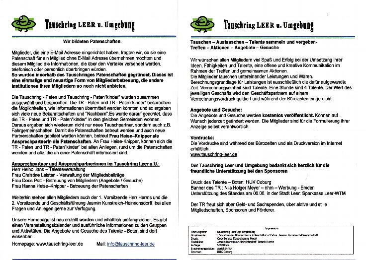 die Marktzeitung vom Tauschring Leer und Umgebung