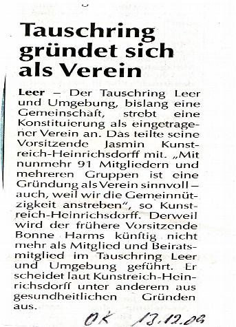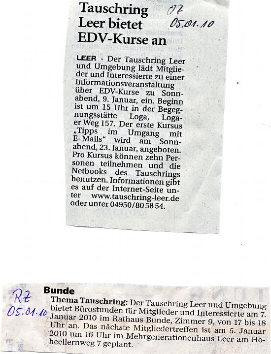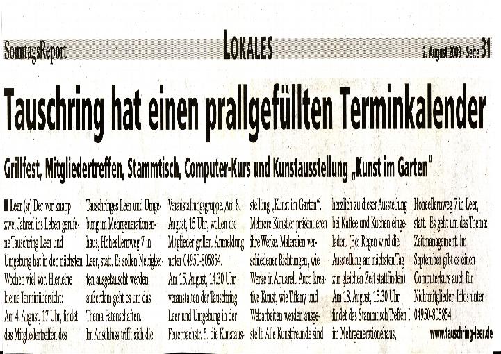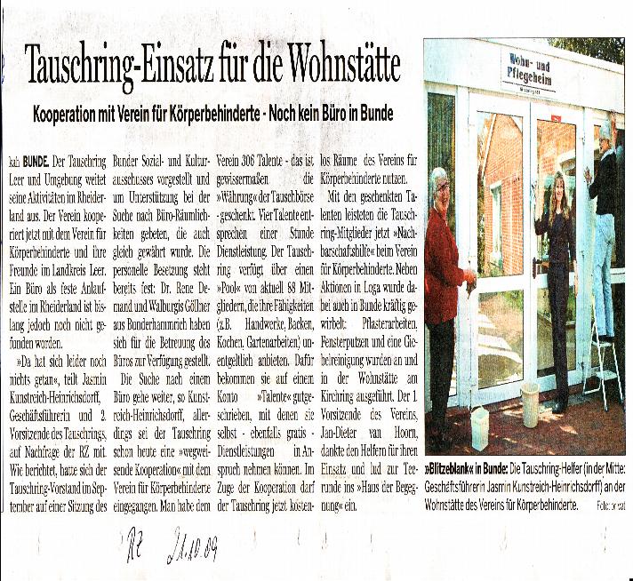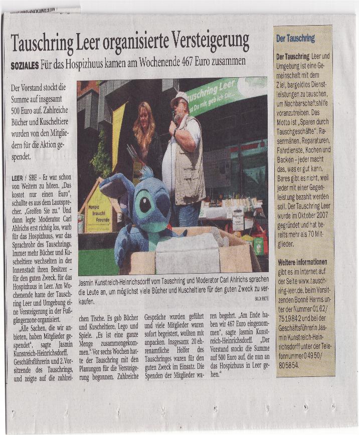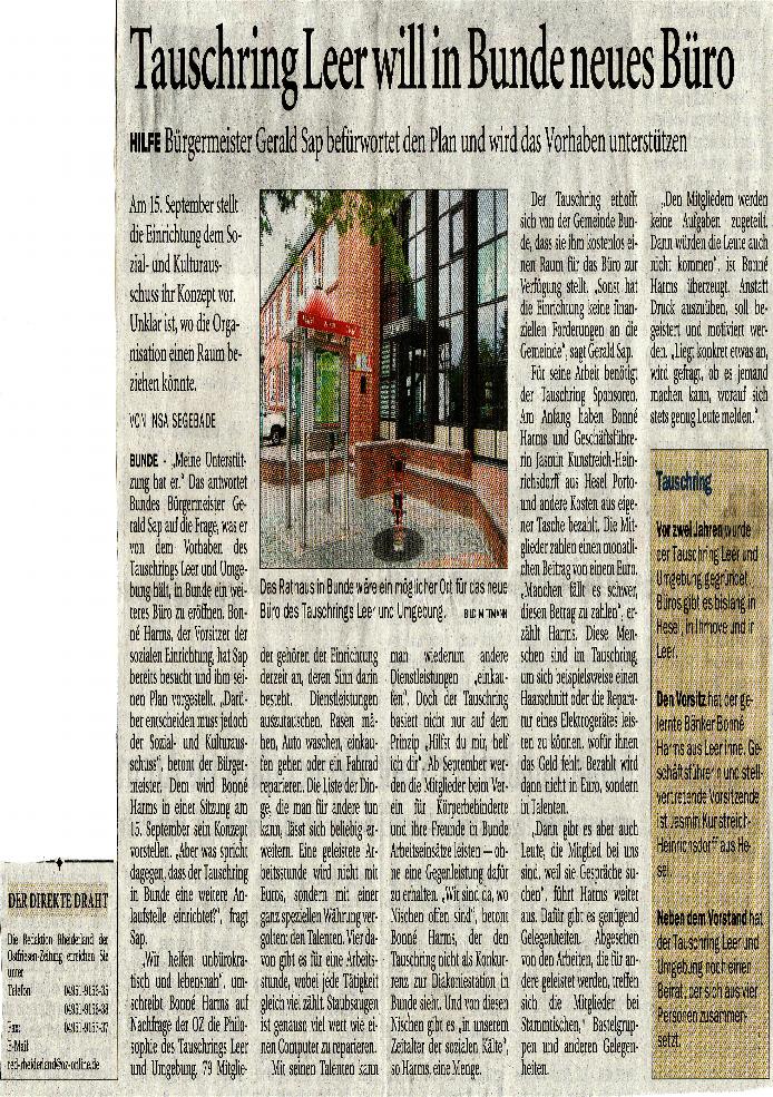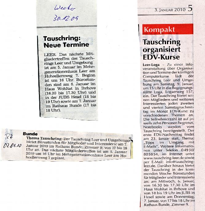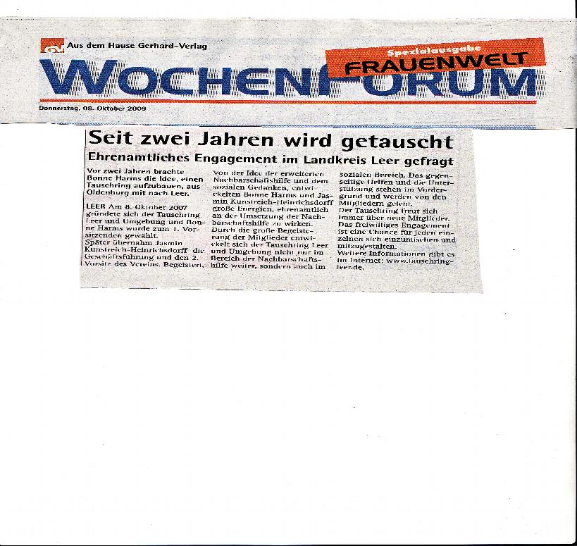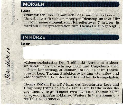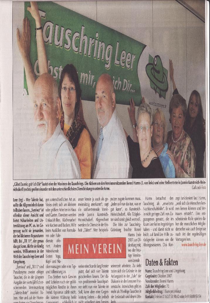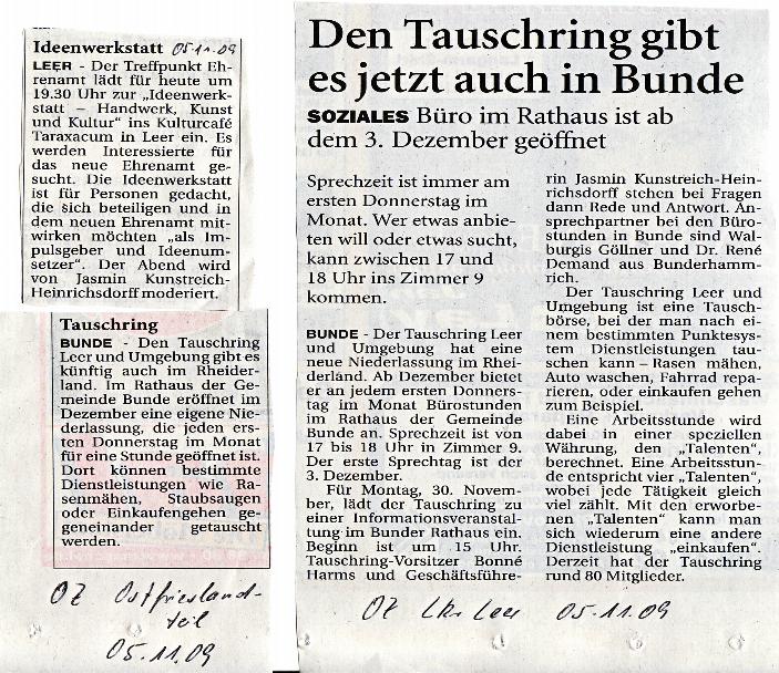 Wir bedanken uns ganz herzlich bei der Presse für die Berichte über den Tauschring Leer und Umgebung.